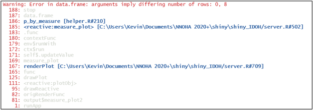 The image shows an error report from the Integrated Design Environment (IDE) I use in my projects. Supporting projects written in the R computer language, the IDE is produced by RStudio and is a popular tool for R users.
